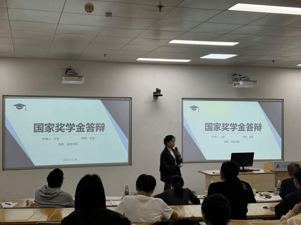 (文|孙艺萱、王郅巍 图|王郅巍 审核|苗壮)2023年10月20日, 2023年中文成人视频 研究生国家奖学金答辩评选会在第一综合楼A座102会议室举行。本次评选会由苗壮老师主持,邀请中文成人视频 党委副书记刘进及龚静、董旺远、王玉龙、刘建晓、牛晓辉、程心瑛、苗壮等老师出席并担任评委,此外,现场还有17位学生代表参与评审。
