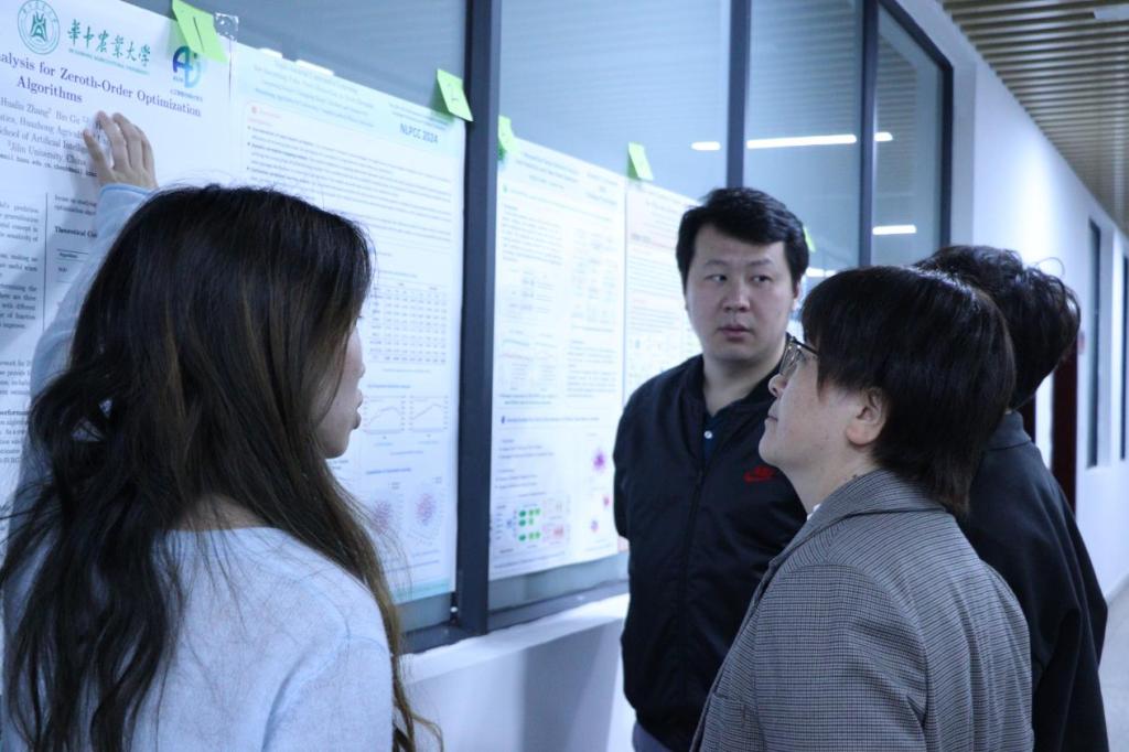 数学专业会场中,肖暄同学的研究成果在墙报比赛中获得一等奖,其研究深入探讨了随机梯度下降方法在部分线性模型中的应用。陈君和刘力源两位同学在PPT汇报比赛中荣获一等奖,他们的研究分别涉及黑盒优化问题和梯度学习中的核积分算子逼近理论。陈君同学聚焦于“How Does Black-Box Impact the Learning Guarantee of Stochastic Compositional Optimization?”做出了相关研究分享,并于今年以第一作者将该研究发表至CCF A类期刊。刘力源同学针对于”基于非对称核的梯度学习误差分析”与”基于分位数回归的梯度学习误差分析”两个科学问题做出了精彩分享。