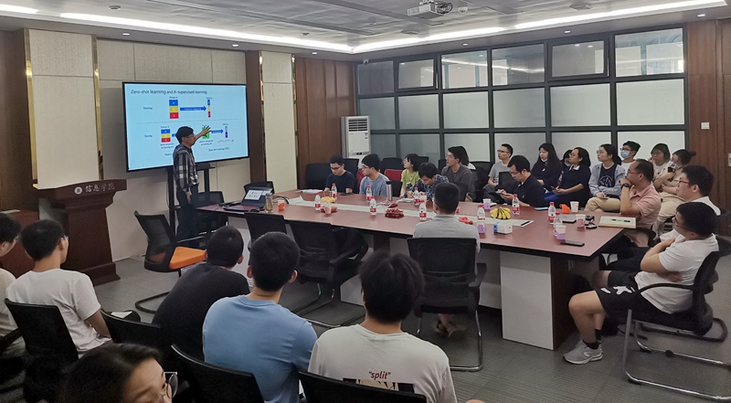 报告结束,参会师生进行了积极交流和深入研讨。王紫嫣博士就如何在没有属性的标注情况下如何进行zero-shot的任务问题请教了尤教授。冯在文副教授对于对如何让机器学习具有记忆性十分好奇,尤新革教授表示从知识图谱、因果关系等方面的入手研究能提供一些思路。大家充分交流想法,思维碰撞,收获颇丰,本次讲学座谈会在轻松愉悦的自由交流环节中结束。