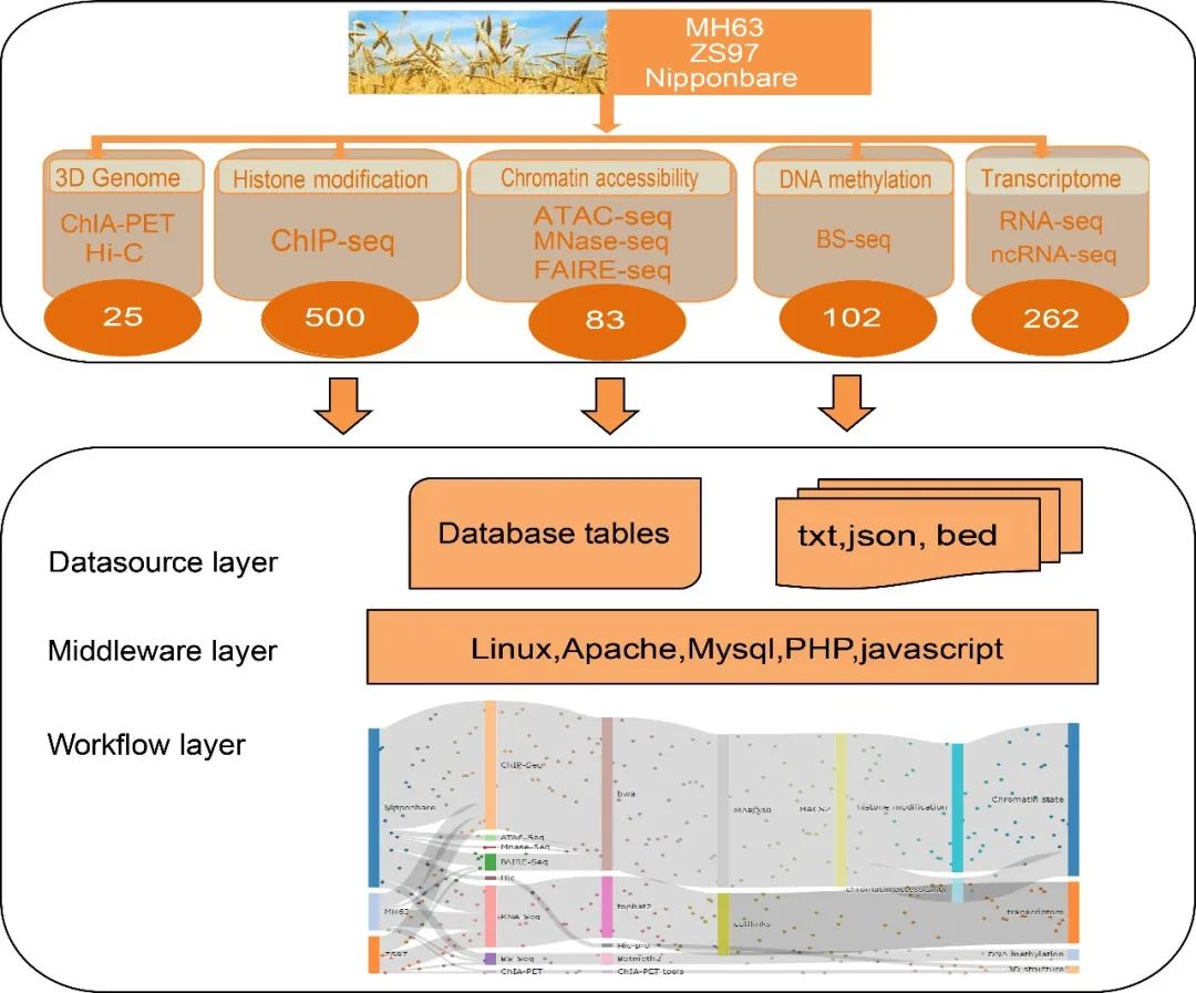 水稻(Oryza sativa L.)是我国乃至世界重要的粮食作物,同时也是基础研究的重要模式植物。水稻基因组DNA顺式调控元件的注释和鉴定,对理解水稻基因表达调控的机理有重要意义。因此,一个整合了水稻多元表观基因组数据的数据库,将极大地方便研究人员查询和分析水稻的表观遗传信息,促进水稻表观和三维基因组研究。