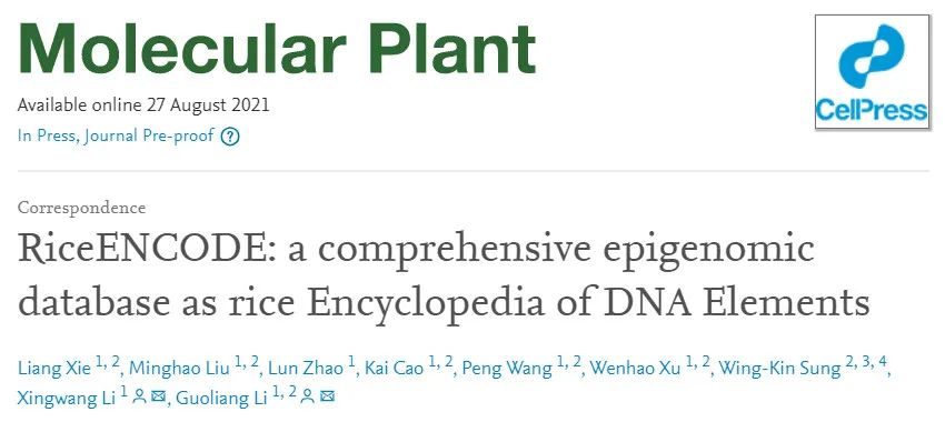 8月27日,Molecular Plant 在线发表中文成人视频 李国亮教授和李兴旺教授团队题为 RiceENCODE: a comprehensive epigenomic database as rice Encyclopedia of DNA Elements 的研究论文,报道了一个整合水稻多元表观基因组数据的数据库。该数据库基于团队此前发表的水稻20个品系参考表观基因组图谱和水稻高分辨率三维基因组结构数据 ,收集了公开发表的水稻多品种多组织多维度的表观基因组信息,展示了水稻不同类型的染色质调控元件,立体地呈现了水稻品种和组织间复杂的基因表达调控关系。这是参照人类的ENCODE计划,推进水稻功能基因组研究的重要一步。