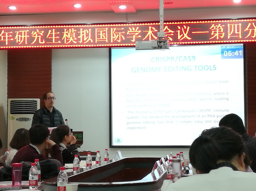 Pablo紧扣学术创新与绿色农业的大主题,以用CRISPR/Cas9进行基因编辑及其在生态农业中的应用为主题进行了精彩的ppt汇报,获得4位评委的高度认可。