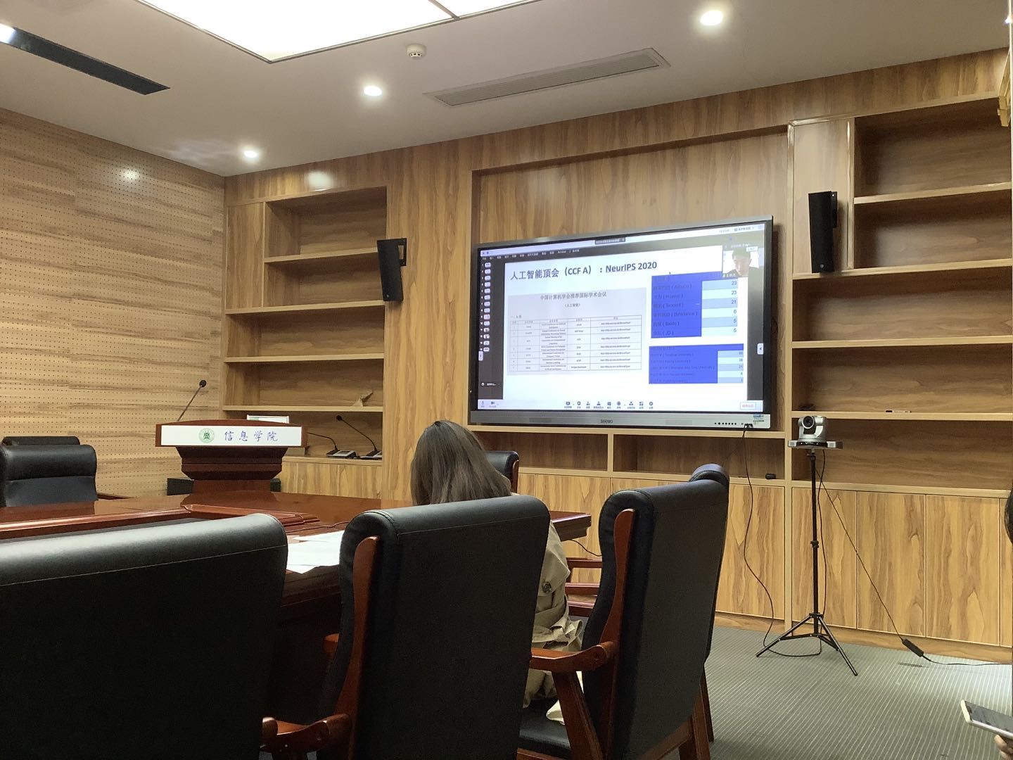 2019级博士研究生王英杰,线上汇报了自己从事泛化能力的研究,以及取得的研究成果。他在人工智能顶会(NeurIPS、AAAI)、人工智能顶刊(IEEE、TNNLS)、中文核心期刊等共发表了10篇文章。其中文章 《Multi-task Additive Models for Robust Estimation and Automatic Structure Discovery》在2020年CCF武汉分部优秀博士论坛获得二等奖。
