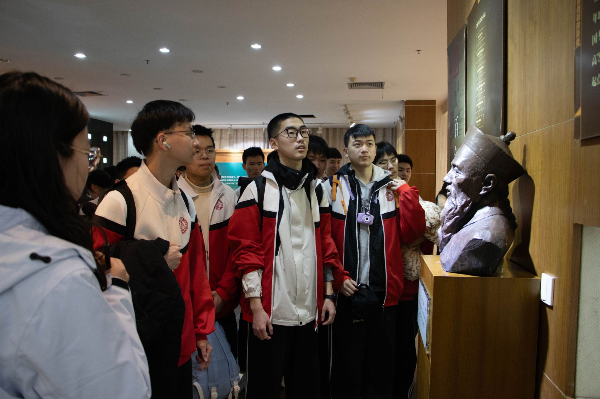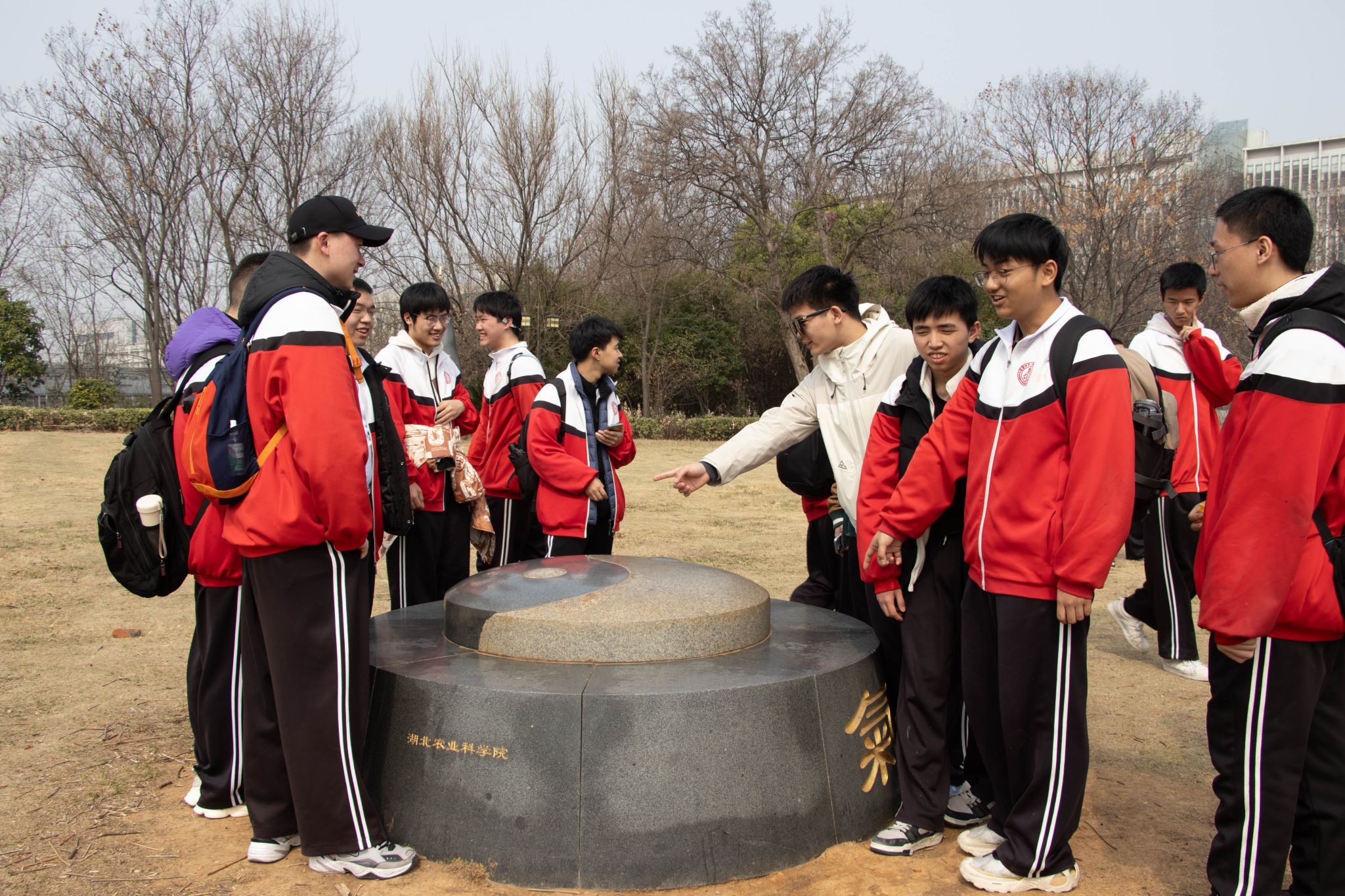 同学们穿行于狮子山麓,二十四节气柱,南湖岸边,欣赏绚丽多彩的春日风景。在油菜花田旁,高三同学们认真聆听了“杂交油菜之父”傅廷栋院士的科研故事,金黄花海与年轻学子的求知目光交相辉映。付一丁同学兴奋地说道:“我们生物老师讲过雄性不育系,但今天在亲眼看到傅廷栋院士团队发现的波里马油菜原始花粉样本,听过他的故事后,才真正理解什么是‘从0到1’的突破。”