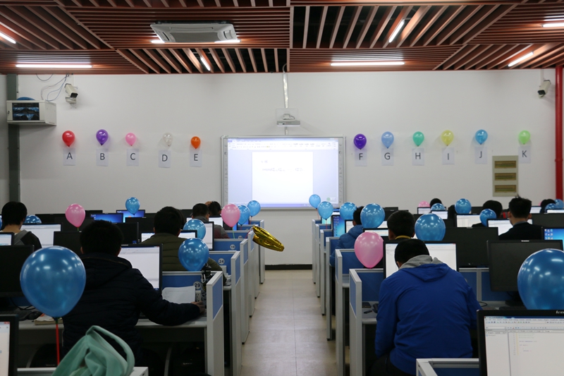 (图文|通讯员曹美林、张昶)插上红、蓝、黄不同颜色的气球,代表着“程序猿”们逐步“进阶”的历程。12月18日,2016年大学生程序设计大赛新生赛暨武汉地区高校现场赛在逸夫楼C座举行。100余选手现场参与了比赛,800余名“程序猿”参加了全国的同步网络赛。