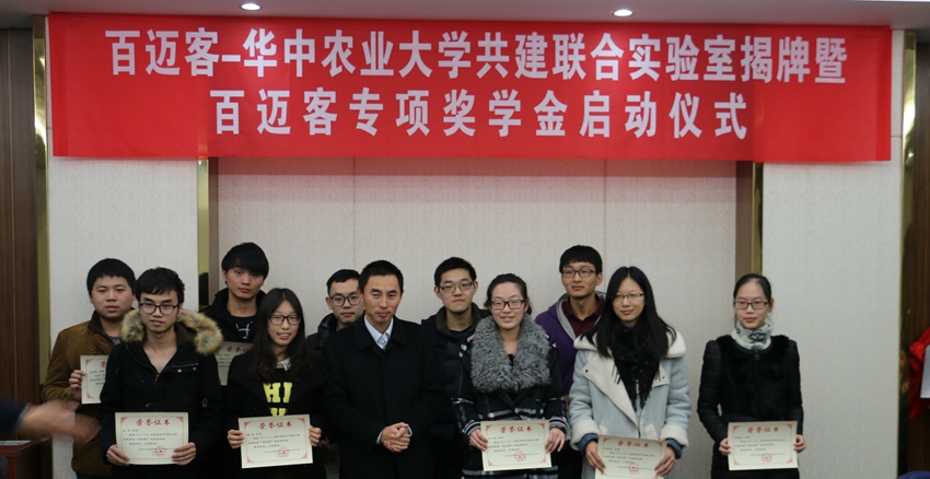 仪式上,郑洪坤提出,企业与高校已经成为“生命共同体”,希望通过设立奖学金等多种形式,搭建“桥梁”,回馈社会,加强校企合作实现互利双赢。李名家对百迈客对华农一如既往的支持表示感谢,对该公司热心公益、捐资助学的举措表示赞赏,他说,“百舸争流,迈进一步;百尺竿头,更进一步”,相信校企合作的路途会越走越宽广。中文成人视频 院长张红雨教授表示,2015年12月1日,能载入中文成人视频 历史,中文成人视频 接受了建院以来最大一笔捐赠,并依托农业生物信息湖北省重点实验室建立了第一个科研联合实验室。今天的合作就像播下了一粒种子,定能长成参天大树。获奖学生代表赵绪超说,感谢企业家的义举,将以感恩的心态,奋力前行。