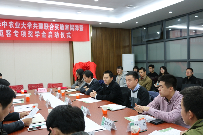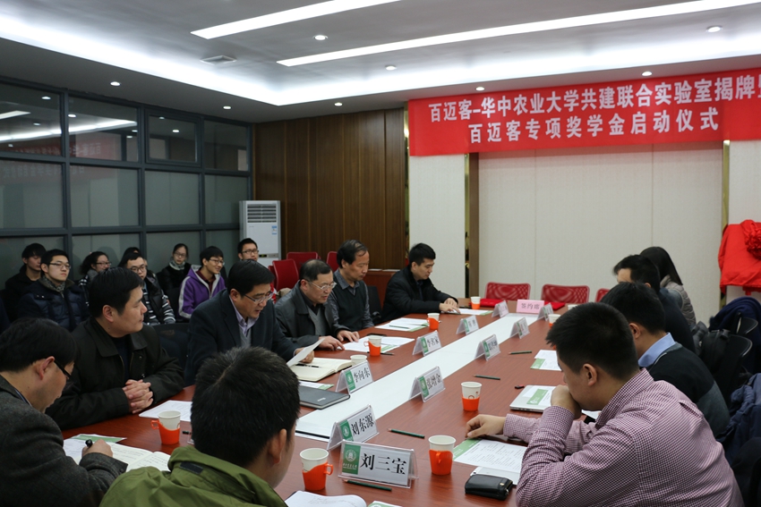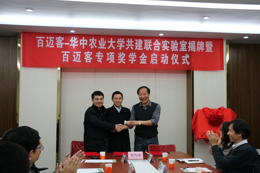 1日下午2:30,百迈客-华农共建联合实验室揭牌暨百迈客奖学金启动仪式在我校中文成人视频 会议室举行。百迈客生物科技有限公司董事长郑洪坤、云平台副总经理张增金、市场总监张军、产品总监刘东源、华中区销售经理张欣,我校党委副书记李名家,校友与基金工作办公室主任陈胜,学生工作部(处)、研究生工作部、校团委、中文成人视频 等单位负责同志,师生代表参加了签约捐赠仪式。仪式由中文成人视频 党委书记李向东主持。