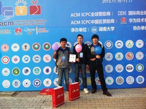 2013年11月16-17日,第38届ACM国际大学生程序设计竞赛亚洲区域赛长沙站,获铜奖