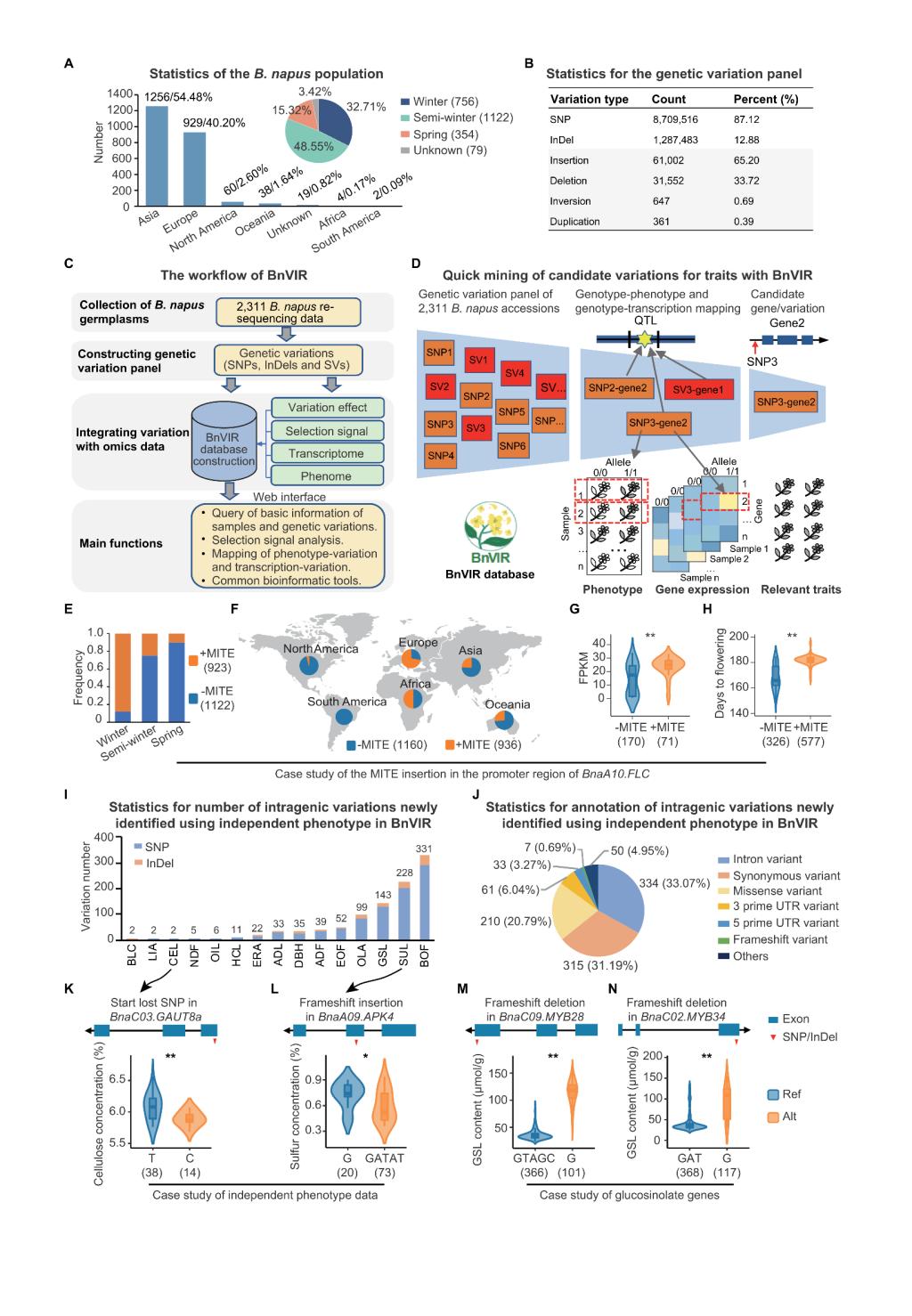 图1 Molecular Plant在线发表研究论文BnVIR: bridging the genotype-phenotype gap to accelerate mining of candidate variations for traits in Brassica napus