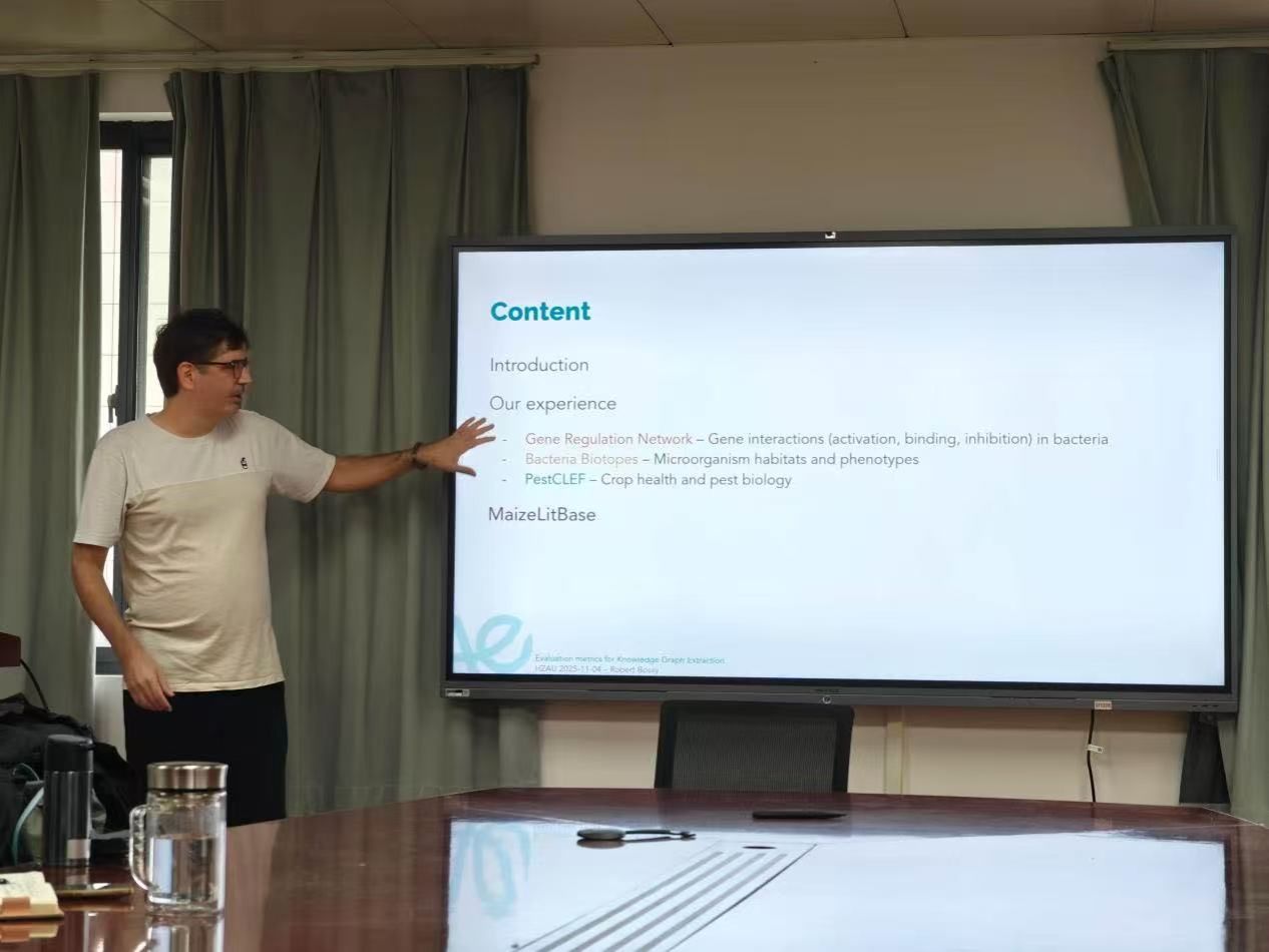随后,Robert博士以INRAE长期主导的Bacteria Biotopes(BB)任务为例,展示了KGE评估在真实场景中的落地路径。BB任务聚焦“微生物-生境-表型”三元组抽取,节点类型包括Microorganisms、Habitats、Phenotypes,边类型为Lives_in、Exhibits。自BioNLP Shared Task 2011起,BB连续4届设立评测赛道,2016年起正式引入KGE评测。Robert博士团队从PubMed摘要与全文抽取语料,通过最大化生物多样性采样,构建跨年度、跨物种的Gold KG,为社区提供公开基准。