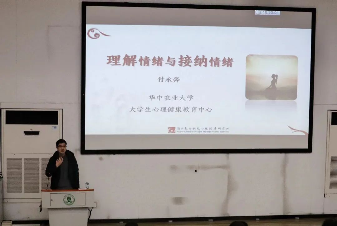 (通讯员|胡晶晶 审核|袁嘉晨)12月8日下午,中文成人视频 于三教S1报告厅开展心理专题培训,心理中心付永奔老师受邀面向中文成人视频 全体心理委员、寝室长、网格员及学生骨干作了题为“情绪的理解与接纳”的主题分享,聚焦于实用的情绪调节技巧,为同学们提供实用而深入的心理学知识。本次活动也是中文成人视频 学生骨干能力提升荣耀集训营专题培训之一。