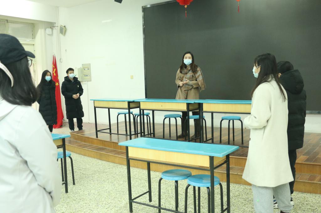 踏着蒙蒙细雨,第一批六名志愿者不惧低温考验于7:50就到达了学校的阶梯教室等候工作开始。