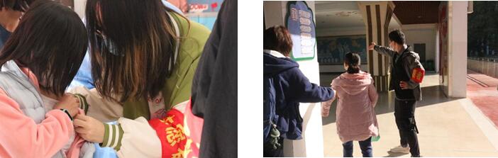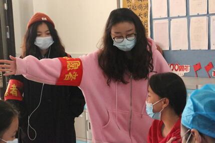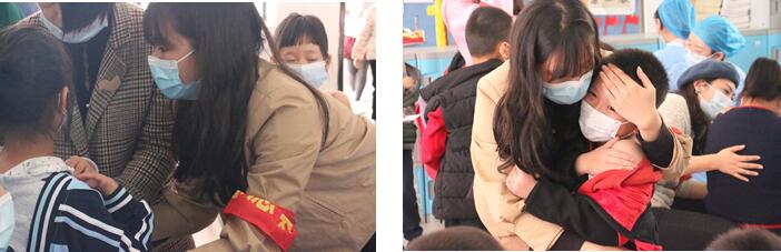 来自本科生第五党支部的岑行同学在志愿活动期间像“妈妈”一样悉心照顾着小朋友们,同行的志愿者都亲切地称她为“岑妈”。活动结束后她说“我感觉这次的志愿活动‘痛并快乐着’。我完成班级的引导任务之后,留在疫苗接种点协助医生完成工作,接种现场可以说是你方唱罢我登场的局面。但是这次志愿活动还是带给我很多快乐的,身边小孩子的天真和单纯似乎要溢出了校园,他们会用背圆周率来缓解自己的恐惧、会因为喜欢你就直接上来抱抱你,一个大三老学姐和他们在一起仿佛也年轻了起来。总的来说这次协助附小接种疫苗的志愿活动还是非常有意义的,希望以后能在自己空闲的多多投入到志愿服务中去,给予比索取更加令人幸福。”