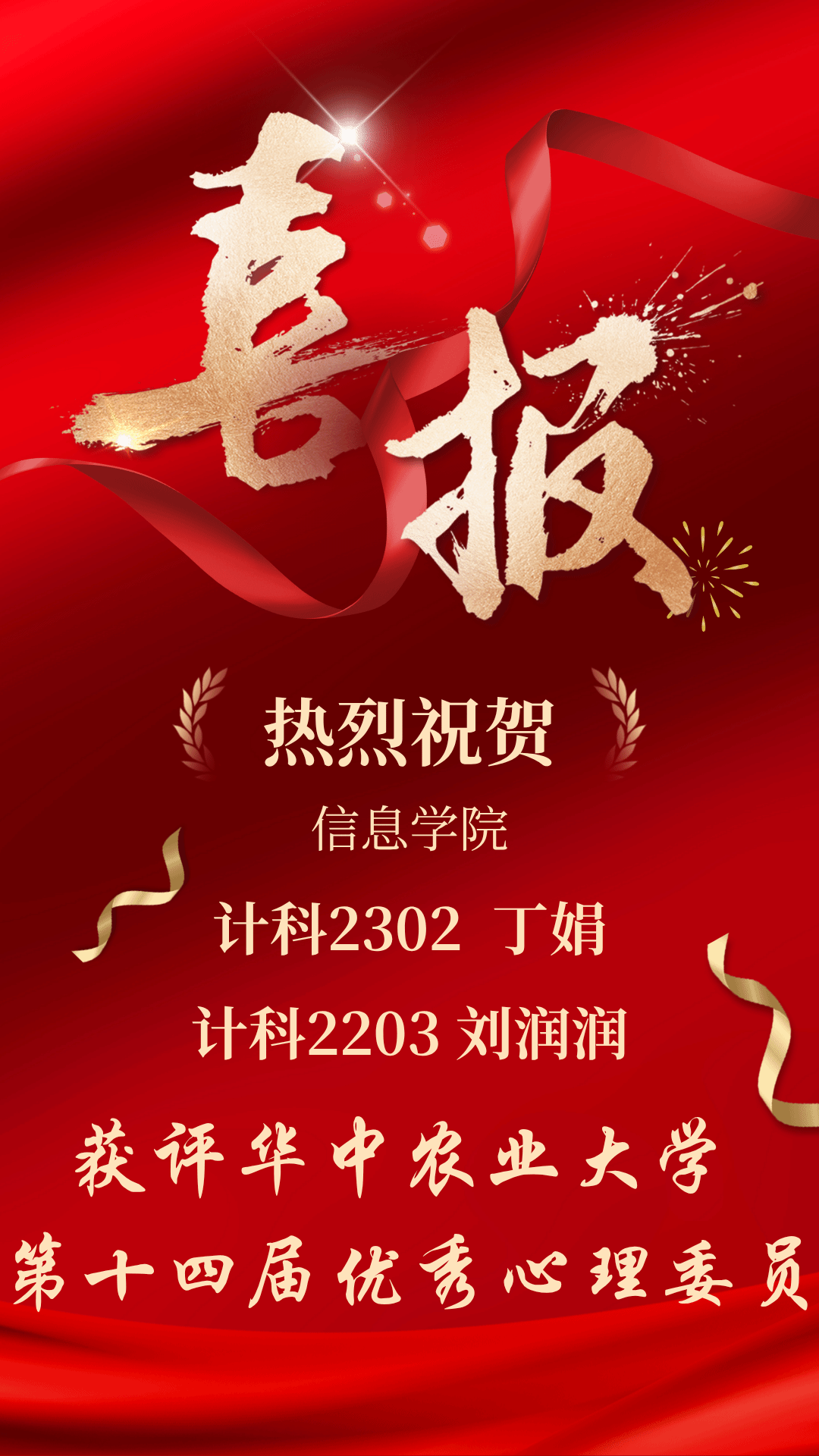 (文字 | 刘智贤 初审 | 朱迅 高睿琦 终审 | 高鹏淇 袁嘉晨)为进一步加强心理健康教育工作,充分发挥心理委员在日常心理支持中的桥梁纽带作用,营造关爱、和谐、健康的校园心理氛围,我校组织开展第十四届优秀心理委员评选活动。其中,中文成人视频计科2302丁娟、计科2203刘润润获评该荣誉。