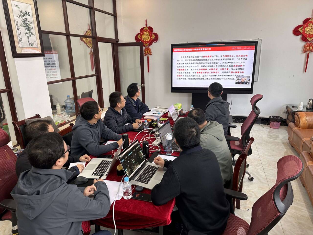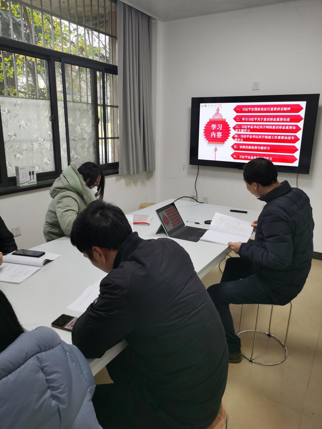 在支部书记、委员领学下,大家开展了习近平总书记关于意识形态重要论述专题学习、习近平总书记关于网络意识形态重要论述专题学习、习近平总书记关于统战工作重要论述专题学习、宗教民族政策(共产党员不能信仰宗教)专题学习、习近平法治思想专题学习、全国宪法日专题学习,各支部还集中收看了中共中央政治局第十次集体学习相关视频,并围绕上述专题开展了交流研讨。会议还布置了支部、系部近期工作,并就水电定额收费、研究生日常管理与安全教育管理等开展了学习研讨。部分支部组织党员教师前往狮子山广场,参观学习了学校贯彻落实习近平总书记给“本禹志愿服务队”重要回信精神主题展。