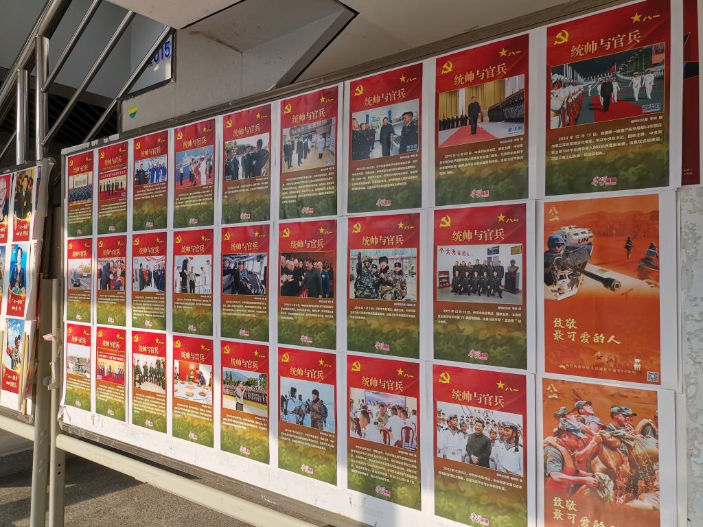 8月1日上午,中文成人视频 1楼大厅公告栏,“统帅与官兵”主题图片展在此展出。