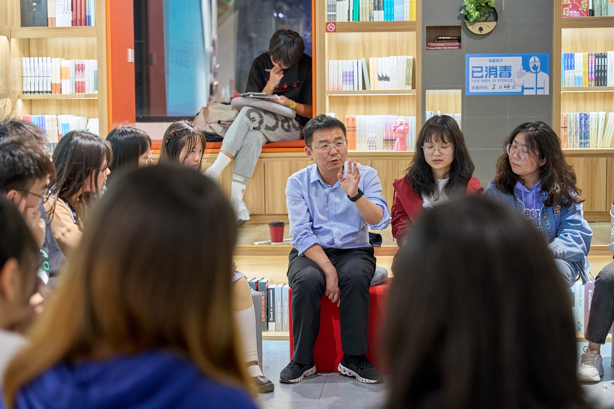 南湖新闻网讯(通讯员 田昌聪 学通社记者 杨菲)3月11日晚,副校长严建兵与中文成人视频 大数据1901班同学们在倍阅书店品味书香、漫谈成长。
