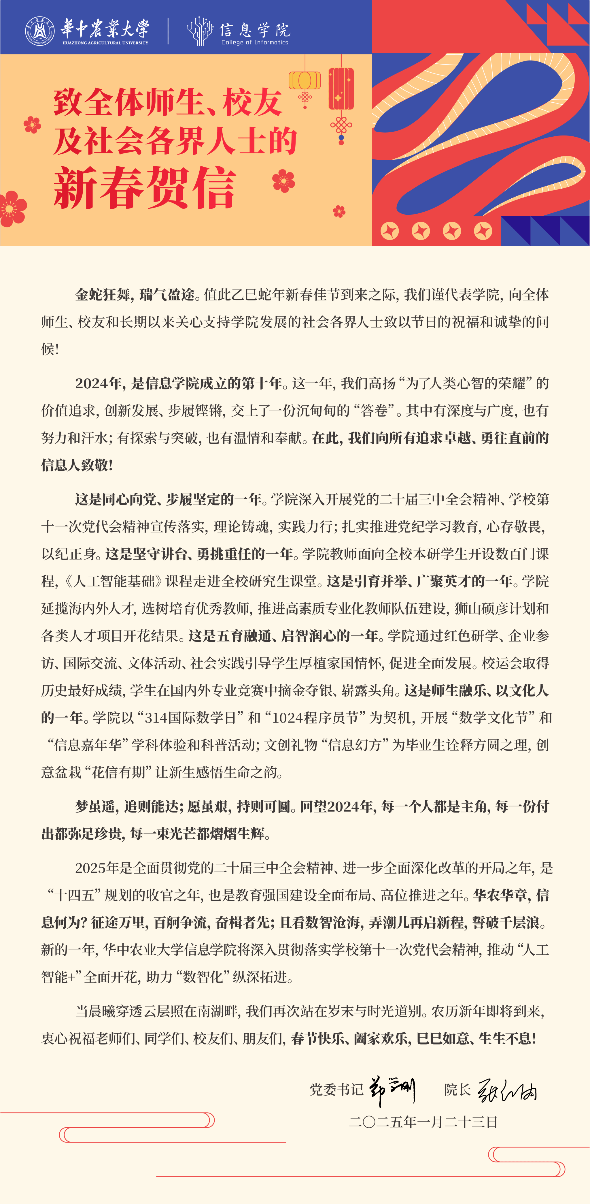 中文成人视频 致全体师生、校友及社会各界人士的新春贺信