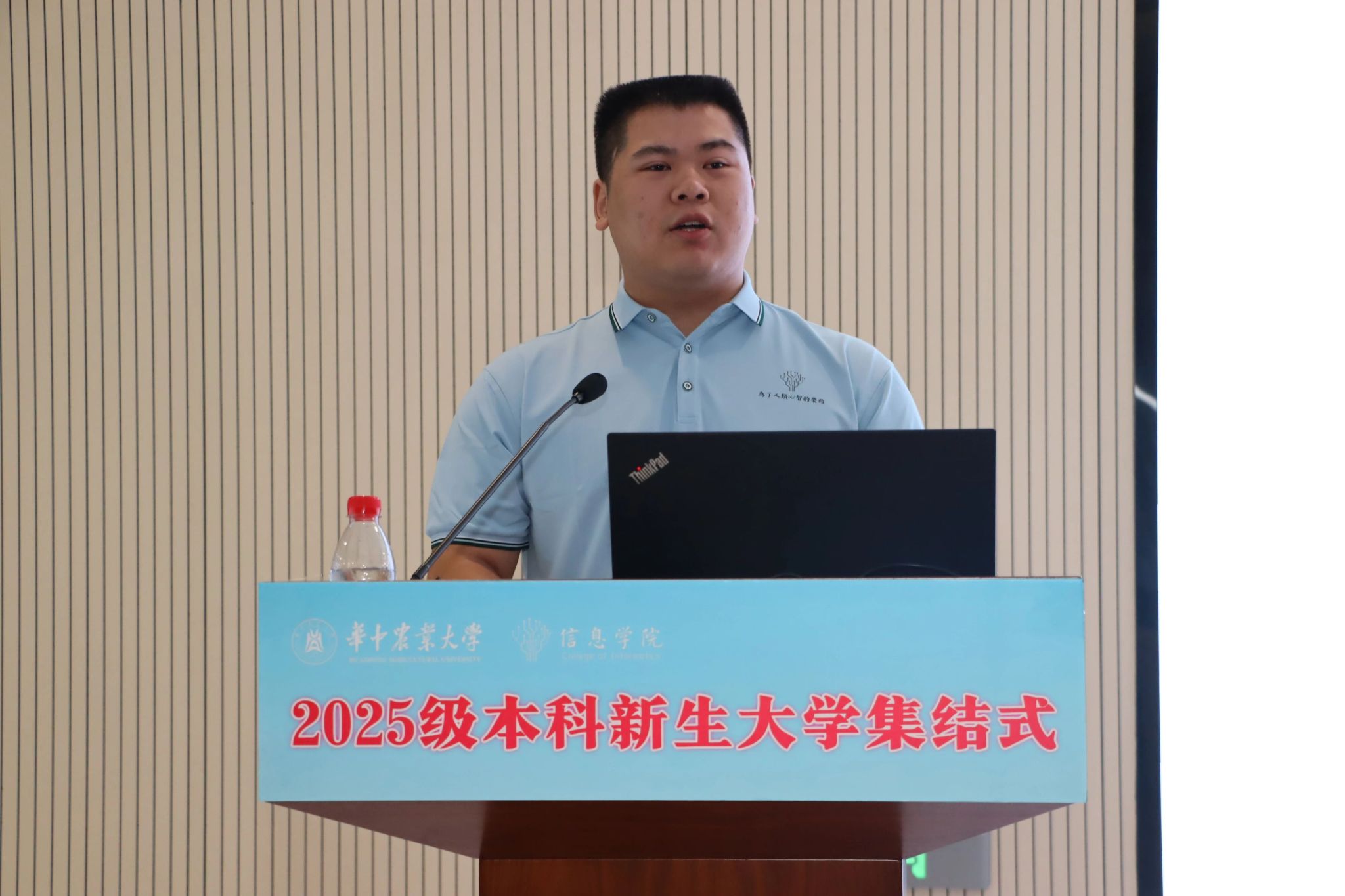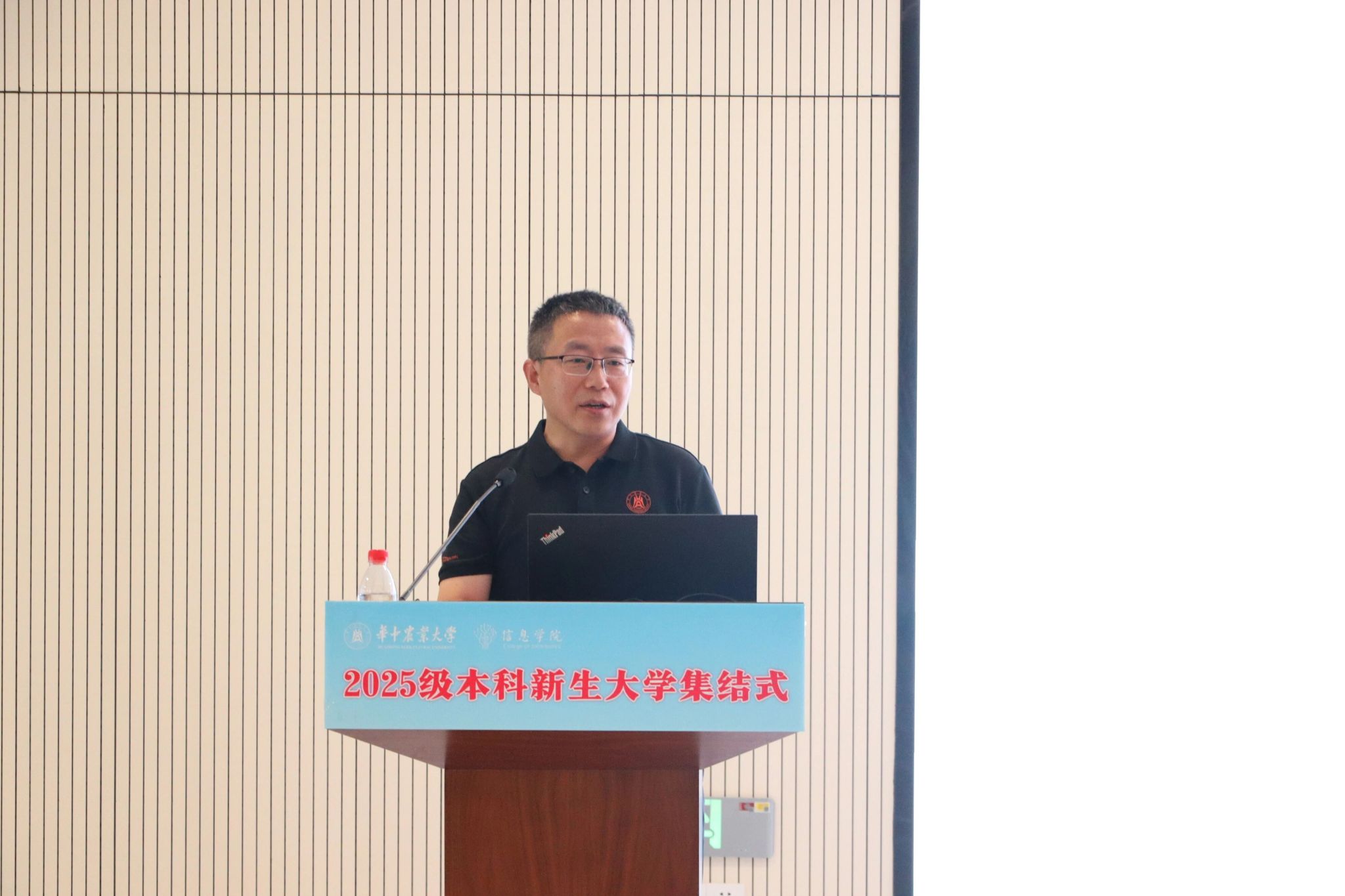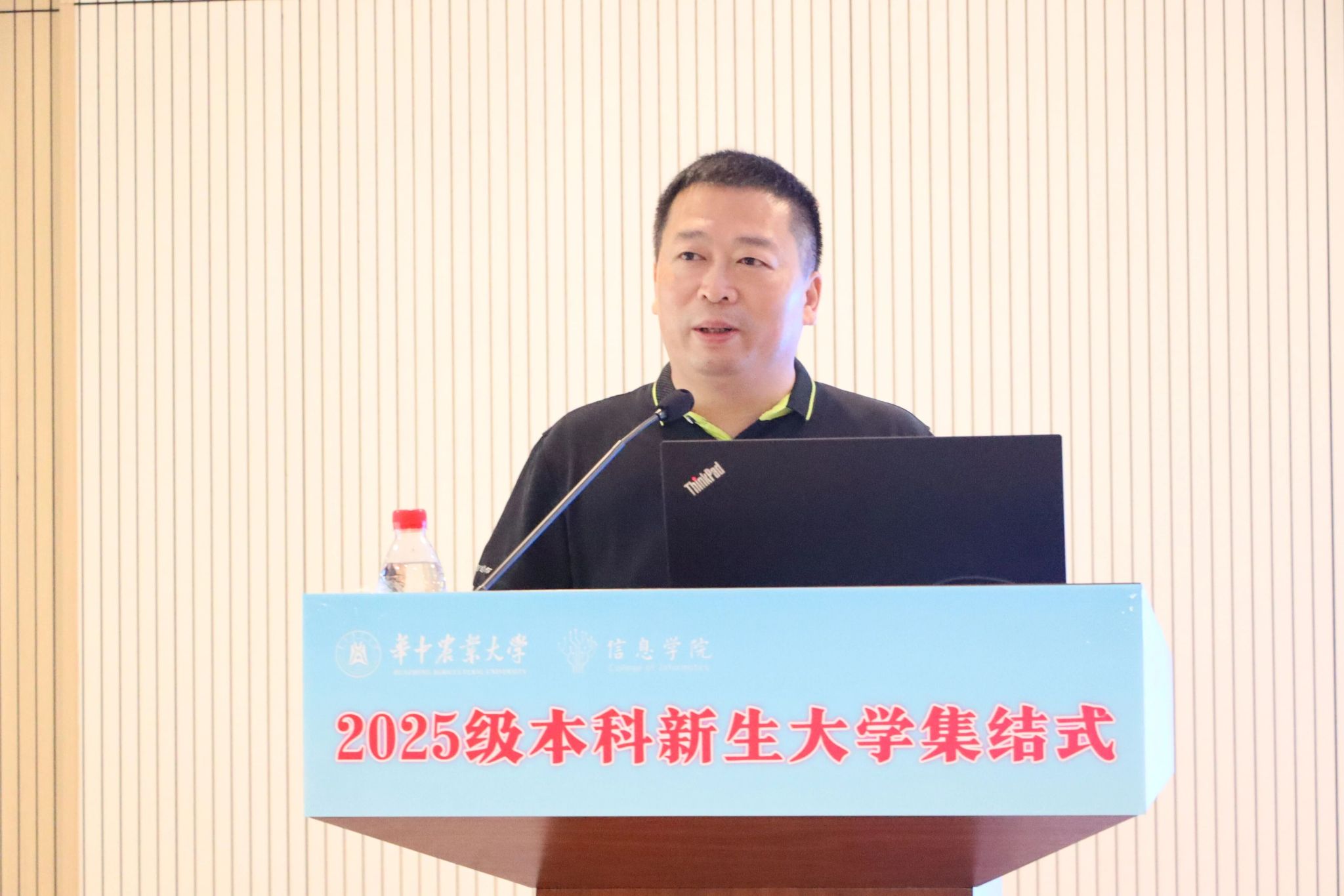 李国亮以“人工智能与时代使命”为主题致辞,他首先围绕中文成人视频 发展,介绍了中文成人视频 在人工智能、计算机科学、生物信息学等方向的学科布局,进一步引出人工智能的战略意义,他也向新生提出三点期望:一是深刻认识人工智能的战略意义,筑牢专业根基;二是系统学习数学与AI核心技术,强化动手与实践能力,掌握AI技术需要扎实的数理基础和系统的实践训练;三是积极投身“AI+农业”“AI+生物”等交叉领域,将技术学习与个人理想相结合,以智能技术回应时代命题。他鼓励同学们秉承“勤读力耕、立己达人”的校训精神,以代码书写青春,用智能创造未来,努力成为担当民族复兴大任的时代新人。