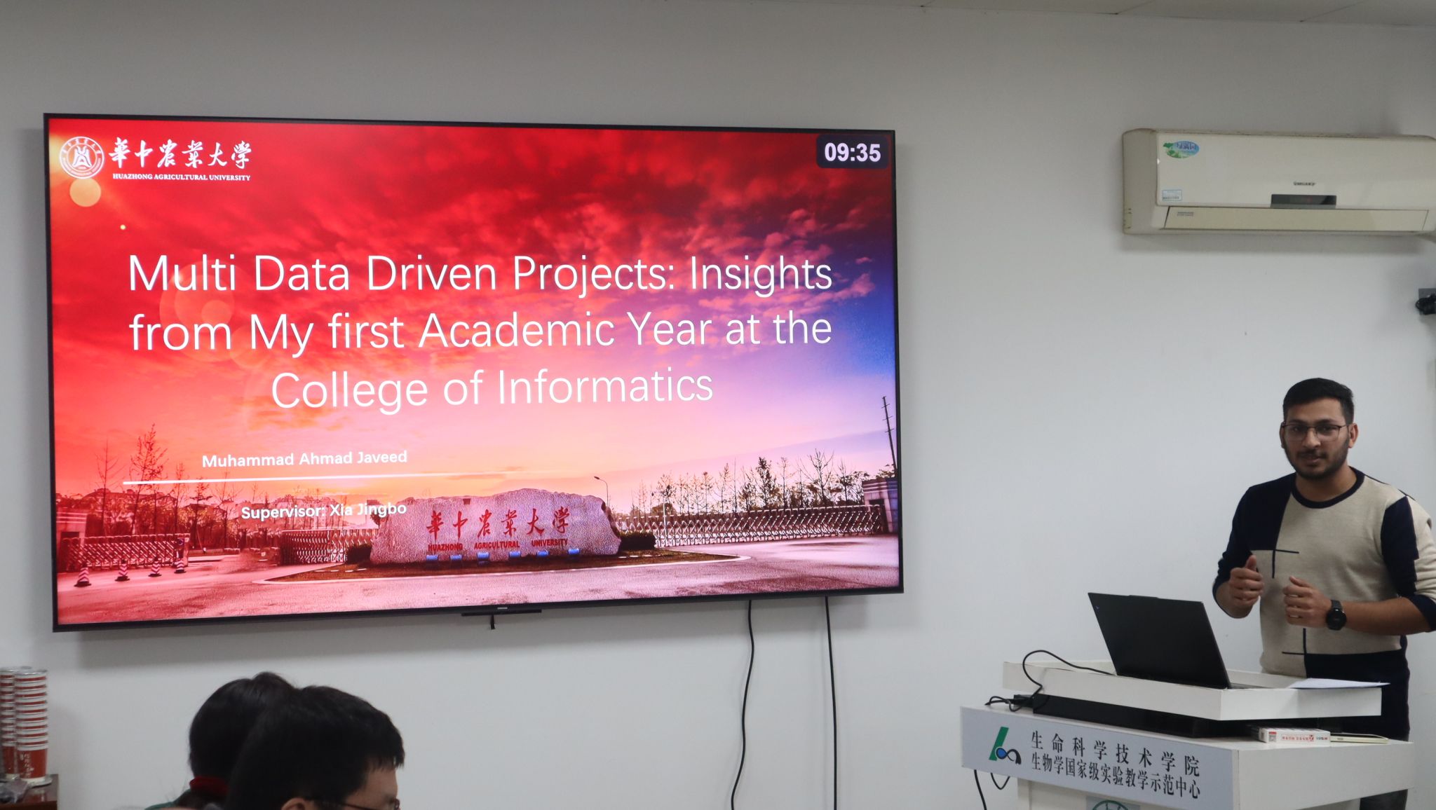 随后,14位同学依次分享了各自的课题研究与科研进展,汇报内容精彩纷呈、亮点突出。其中,王帅阳、张智两位同学凭借在微生物领域的创新性研究成果,斩获墙报比赛一等奖;孟旭、张隽美、唐浩、邱闽瑶四位博士则在PPT汇报中脱颖而出,荣获一等奖。孟旭博士聚焦“人类加速区域靶基因”展开研究,为从进化视角解读大脑衰老机制提供了重要参考;张隽美博士围绕《基于知识图谱与异质图神经网络的猪微生物-饲料效率关联推理》主题开展深入汇报;唐浩博士分享了《代谢相关蛋白网络的构建及宿主靶向型抗流感药物重定位》的研究成果;邱闽瑶博士则针对《基于强化学习的治疗性抗体多属性优化》课题进行了详细阐述。