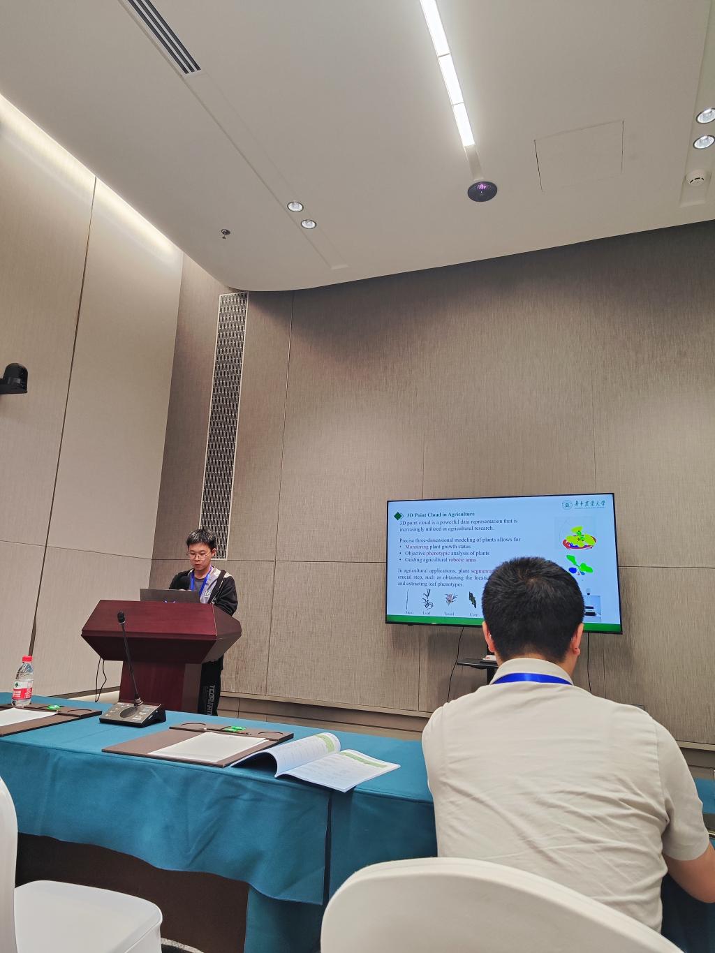 28日下午,朱剑中同学在以“Hybrid Augmented Intelligence and Smart Grid”为主题的分论坛做了口头汇报,题目是《Edge-constrained Point Cloud Segmentation for Plants》。贺俊文同学在以“Advanced Perception Theory and Cognitive Computing Theory”为主题的分论坛上展示了《GCSNN: Glia-Coupled Spiking Neural Network》的墙报。他们与其他与会者进行了热烈的交流和讨论,得到宝贵意见建议。