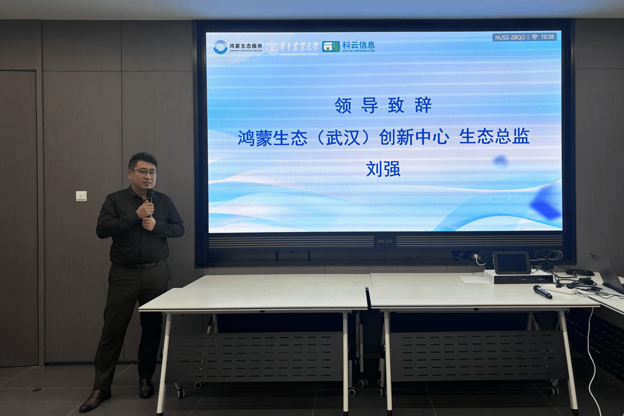 活动伊始,中文成人视频 副院长徐勋光,实验教学中心李博、辅导员叶双休,以及鸿蒙生态(武汉)创新中心人才培养负责人张沐雯、武汉科云信息技术有限公司副总经理吴文俊、高级讲师王亮等人共同出席开班仪式。
