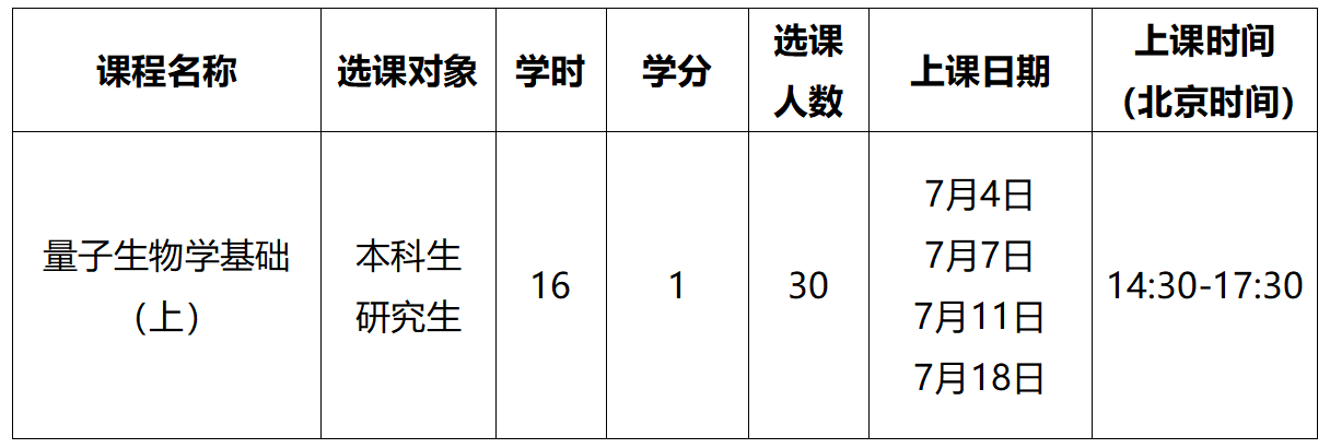 课程名称:量子生物学基础(上)(Foundations of quantum biology)