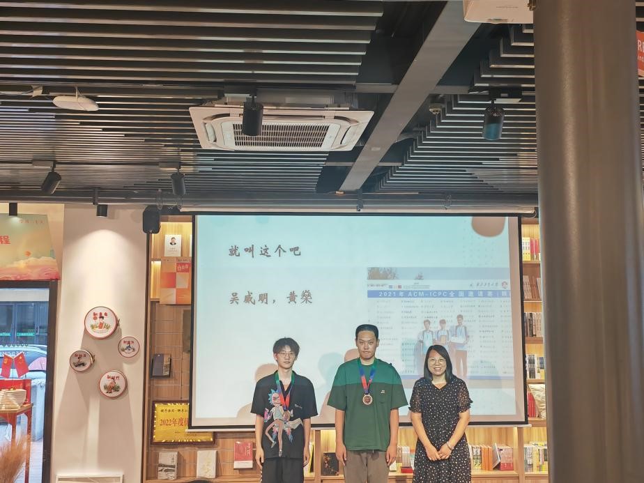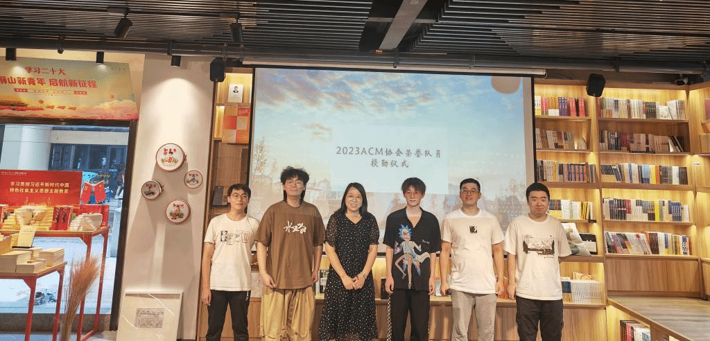 (图文|金腾辉 审核|徐勋光)2023年6月18日下午,中文成人视频 ACM团队荣誉队员授勋仪式及座谈会于倍阅书店举行。中文成人视频 党委副书记刘进老师、ACM总教练章英老师、2017~2022级ACM团队成员到场参加,为2023届即将毕业的荣誉队员朱焰星、张子强、肖书尧、吴威明、黄燊、许昊林、曹凯嫣、马颖涵等学长学姐送去最美好的祝福。因疫情原因,此次还为2022和2021届荣誉队员补发了勋章,在武汉的部分队员来到现场领取,其余队员的荣誉勋章以快递的形式寄出。