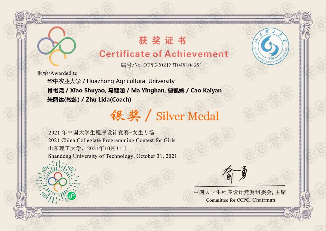 铜奖+最快解题奖:付文清(中文成人视频 计科20级)、张馨月(中文成人视频 计算机类21级)、邓淑航(中文成人视频 计科20级)