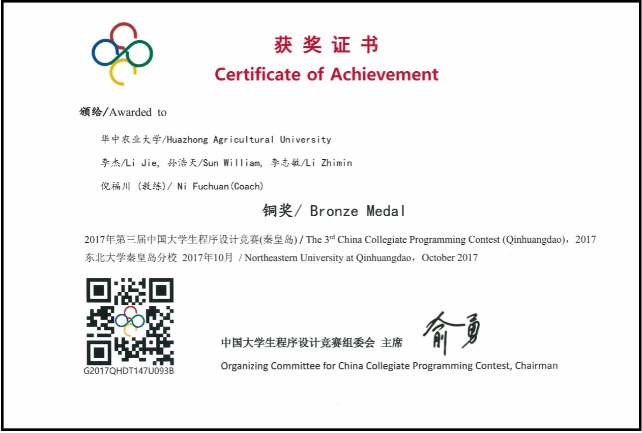 2017年CCPC中国大学生程序设计竞赛哈尔滨站——铜奖