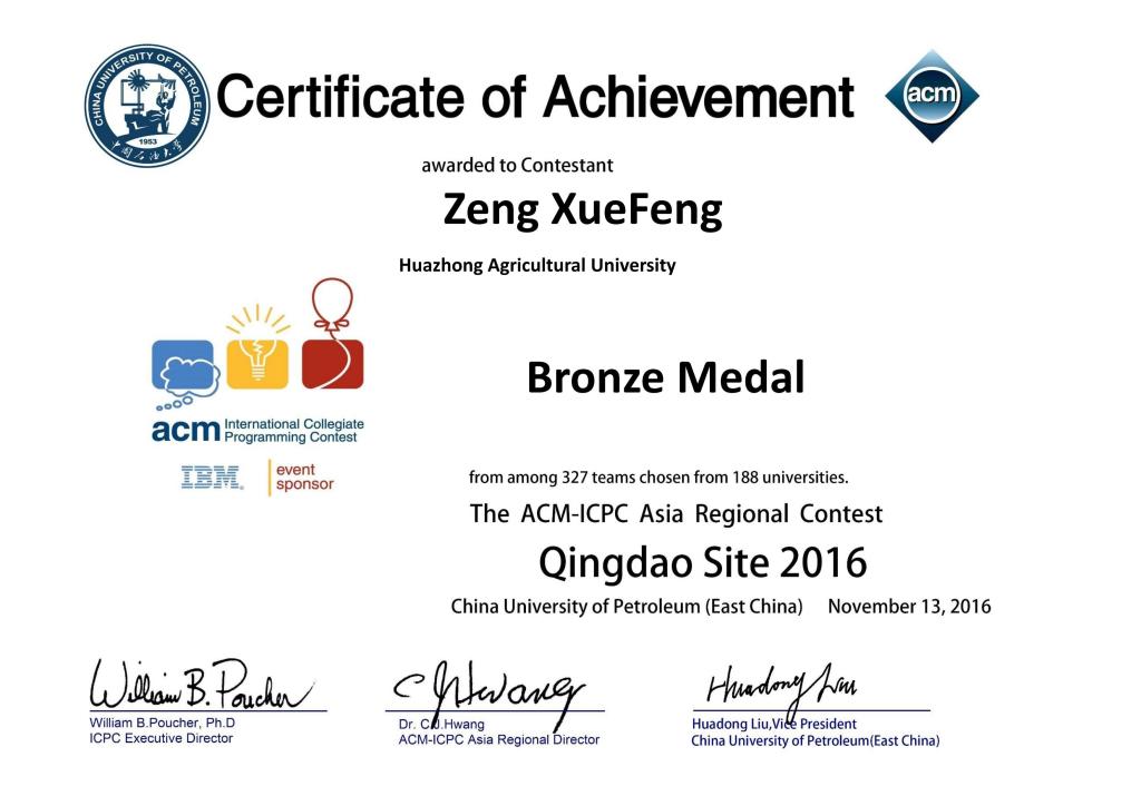 2016年ACM国际大学生程序设计竞赛亚洲区域赛青岛站——铜奖
