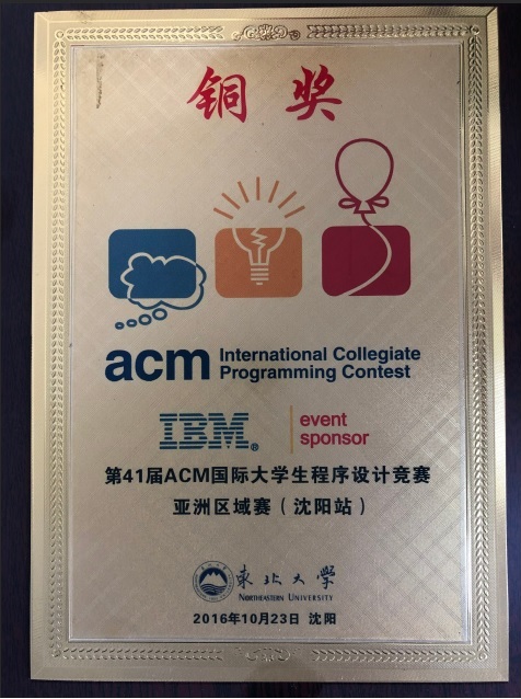 2016年ACM国际大学生程序设计竞赛亚洲区域赛沈阳站——铜奖