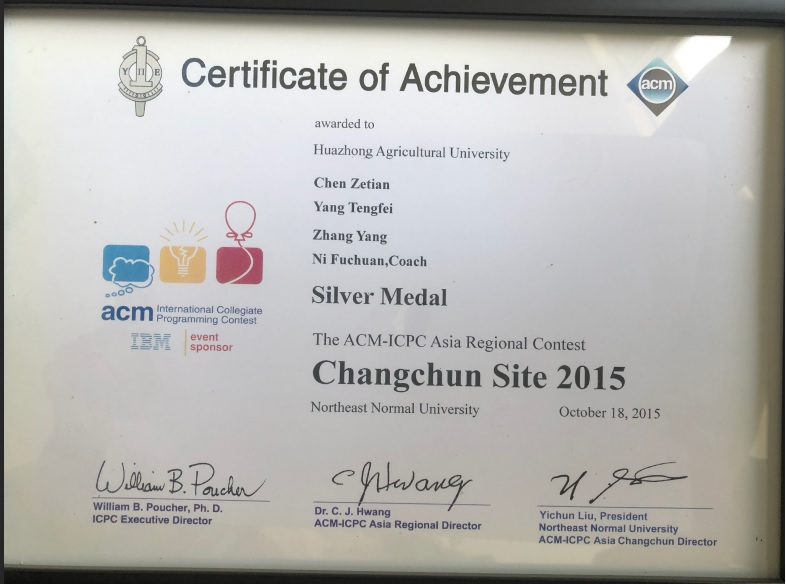 2015年ACM国际大学生程序设计竞赛亚洲区域赛长春站——银奖