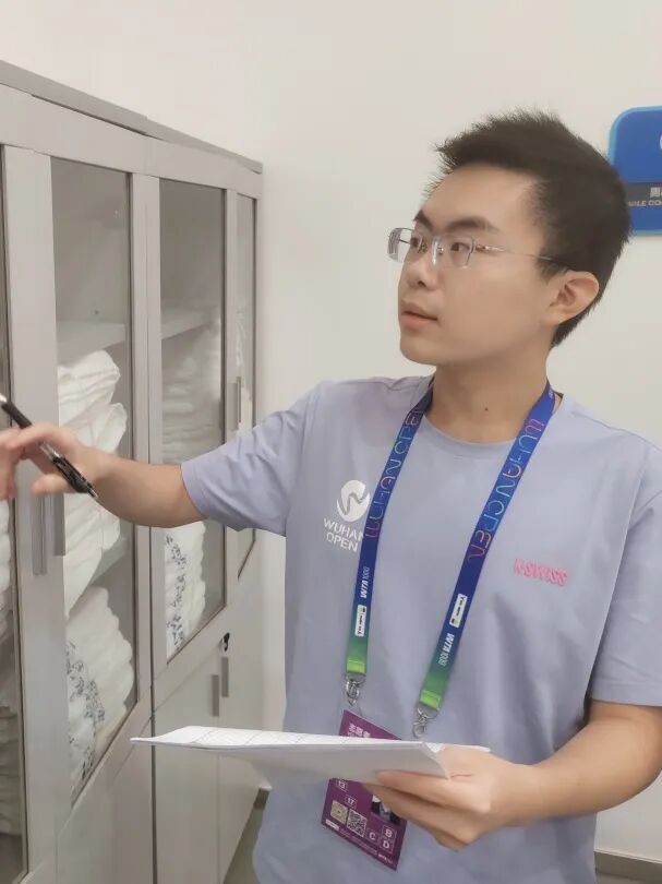 赛事节奏快,他还解锁了“碎片时间管理法”:“看到身边同学趁间隙背单词、听专业播客,我也跟着把课程笔记存进手机,忙完就能学一会儿。”更意外的是,特殊时段的人手短缺,让他认识了不少其他岗位的“临时同事”,他表示:“和裁判组、后勤组的同学协作后,才真正看懂一场国际赛事的‘运作蓝图’,视野一下子打开了。”
